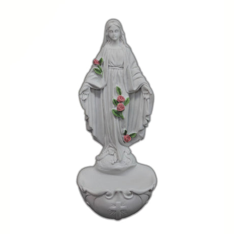 8.5 inch White Lady of Grace with Roses Holy Water Font for Homes
