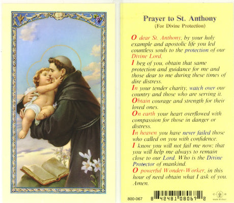 Sale price $0.95 Regular price $1.00Unit price /UnavailableVery low stock (8 units)Saint Anthony Holy Card with Prayer for Divine Protection - 800-067