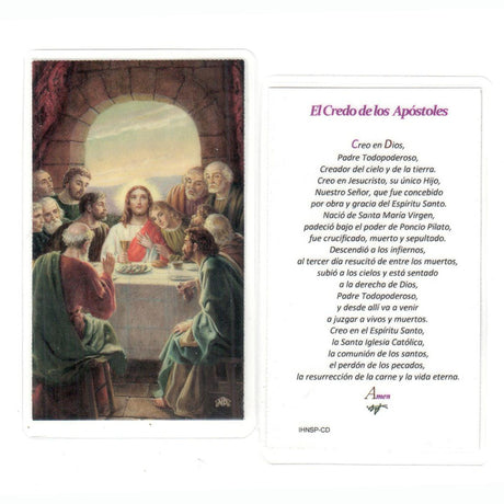 Tarjeta Santa con la Última Cena y la oración del Credo de los Apóstoles