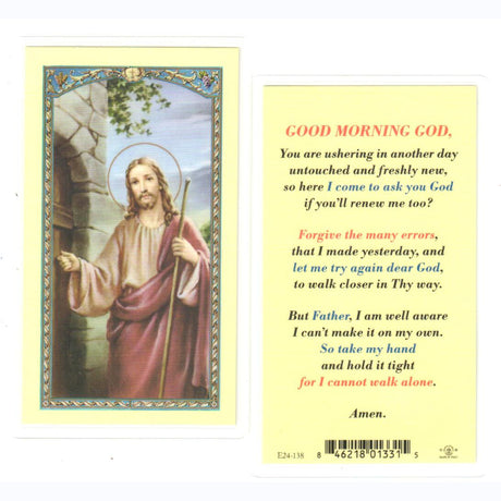 Sale price $0.95 Regular price $1.00Unit price /UnavailableLow stock (17 units)Christ Knocking Holy Card with Good Morning God Prayer - E24-138