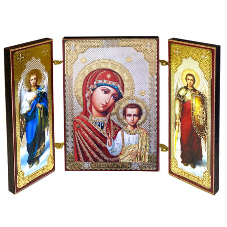 Regular price $6.50Unit price /UnavailableVery low stock (3 units)Small Triptych Virgin of Kazan with Angels Icons U444