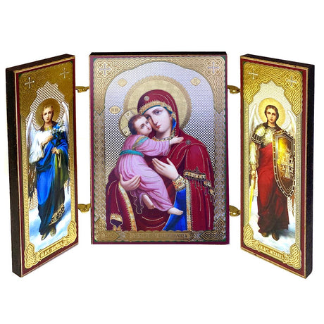 Regular price $16.95Unit price /UnavailableVery low stock (2 units)Wooden Icon Triptyich Virgin of Vladimir with Sts Michael & Gabriel