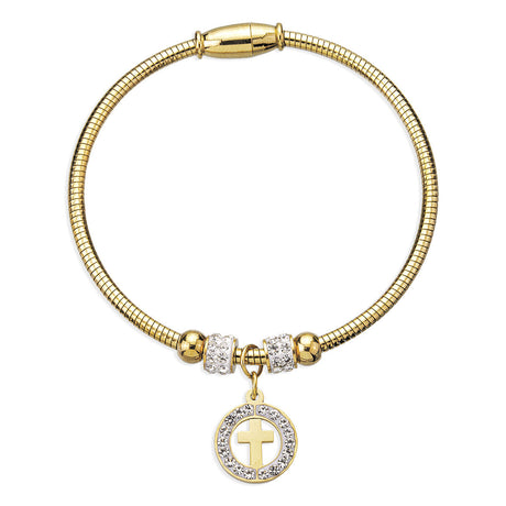 Regular price $25.50Unit price /UnavailableVery low stock (4 units)Gold Plated Stainless Steel Silvatore Crystal Cross Charm Bracelet 1750G
