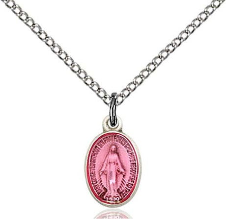 Sterling Silver & Pink Miraculous Medal Pendant 0700PSS/18SS