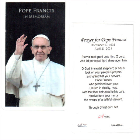 Sale price $0.95 Regular price $1.00Unit price /UnavailableIn stockMemorial Pope Francis Laminated Holy Cards