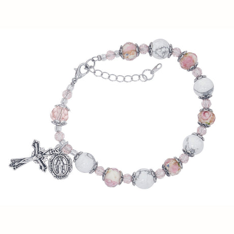 - White Howolite Stone & Floral Crystal Rosary Bracelet BR358 Regular price $31.00Unit price /Unavailable