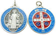 1-1/4 inch Blue & Red Epoxy St. Benedict Medal in Silvertone