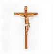 The wood cross measures 15 inches in length and bears and image of the crucified Christ and INRI sign cast in durable polymer material.