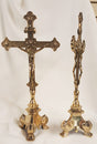 2 Sided Standing Brass Crucifix with Tri-Fold Base - 14 inches tall