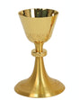 High polish finish flared base chalice, with engraved Celtic design around base, node and cup. All 24k gold plated.