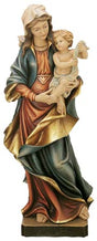 This 33cm (approx 13 inch) statue of the Madonna and Child statue is hand carved and hand painted in full color oils by the artists of Bernardi Wood-Art