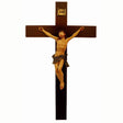 Hand-painted alabaster corpus of Christ looking up to Heaven mounted on a dark walnut, wood cross.