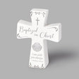 Baptized in Christ table cross is a meaningful keepsake designed to mark one of life’s most sacred milestones. Crafted in ceramic, the cross features elegant detailing and a smooth finish that gives it a timeless look. Its compact size makes it ideal for display on a table, dresser, or shelf as a daily reminder of faith and new beginnings. A heartfelt keepsake that brings both beauty and spiritual significance, it makes a thoughtful baptism gift to treasure for years to come.