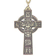 4 x 2 inch Pectoral cross die struck and silver plated pendant on a 30 inch substantial silver plated steel chain chain.The cross tells of beginnings: Adam and Eve(Gn)and the Wise Men (Mt 2). Offering and praise are expressed in the scenes on the arms: Abraham's Sacrifice (Gn 2) and David's song (Psalm). Daniel between lions (Dn 14) - a type of Christ - directly below the central figure of the redeeming judge amid the four living ones. (Rv 21) At the top, the hermits, Paul and Anthony, gather in the Eucharist, a sign of the church under the Pentecostal dove. On the base, the Eucharistic story of loaves and fishes (Mt 14).