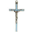 5 inch blue enameled crucifix with siver finish corpus (bod of Christ).