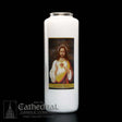 Each devotional candle is finished with original full color image of Sacred Heart of Jesus, produced on durable film.