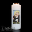 Each devotional candle is finished with original full color image of Saint Padre Pio, produced on durable film.