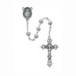 All sterling silver, this rosary features open filigree beads cast in silver with a sterling silver center and crucifix.