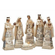 6 piece Set includes Jesus, Mary, Joseph, and 3 Kings. Cast in resin and stone composition in neutral colors that looks nice in modern decor homes.