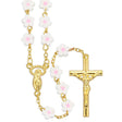 7mm White & Pink Floral Shape Fimo Bead Rosary