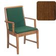 See wood swatch on image for wood finish colorShown in Pecan finish with Hunter Green upholsterySanctuary Arm Chair with upholstered cushion and padded back.