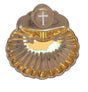 Made in the USA, this gold-plated Baptismal Shell measures 4-3/4 x 4-1/2 inches in size and has a simple, Latin-style cross on the "handle".