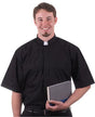Black Short Sleeve Clerical Shirt with Tab Collar