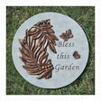 Handsome bronze finish leaves and butterfly and inspiriational verse: Bless This Garden
