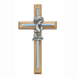 Boy's 7 inch Oak Wall Cross with Blue Enameled Overlay