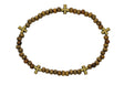 BROWN WOOD STRETCH BRACELET WITH ANTIQUE GOLD CROSSES.