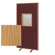 Confessional Screen Shown in Golden Oak finish with Maroon fabric.