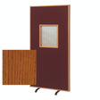 Confessional Screen Shown in Golden Oak finish with Maroon fabric.