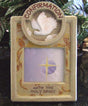 7 inches high and cast in resin. This easel back frame holds a 3x3 inch photo from your loved one's special Confirmation day.