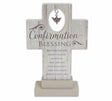 Small standing cross keepsake for Confirmation (or RCIA). 6 inch tall cross reads: Confirmation Blessing - May the Father always watch over you. May the Son ever bless you. May the Spirit always guide you. Boxed. Manf production no. SC113.