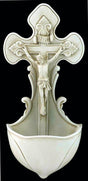 Crucifix 7.5 inch Holy Water Font in Antiqued White