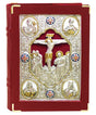 Gold and silver plated front panel with colored enameled icon of the Crucifixion of Christ and the Four Evangelists.