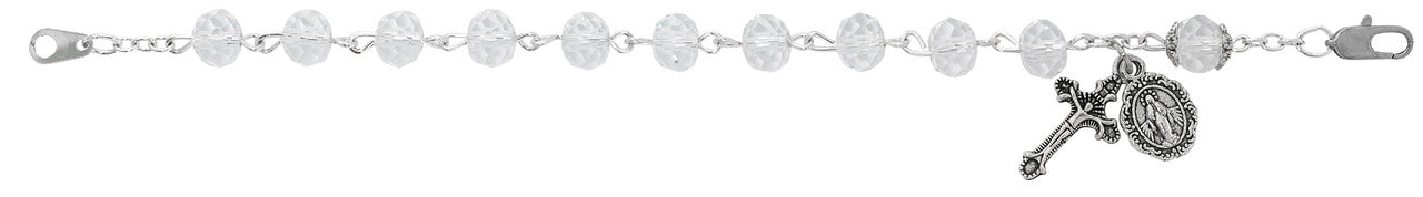 8MM GENUINE CRYSTAL BEADS WITH SILVER OX CRUCIFIX AND MEDAL.