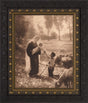 The Gift of the Good Shepherd is a tender reproduction of a nineteenth century stone lithograph by Josef Scheurenberg. This old fashioned image portrays the warm affection of a young shepherd boy as he offers his bouquet of dandelions to the Christ Child.