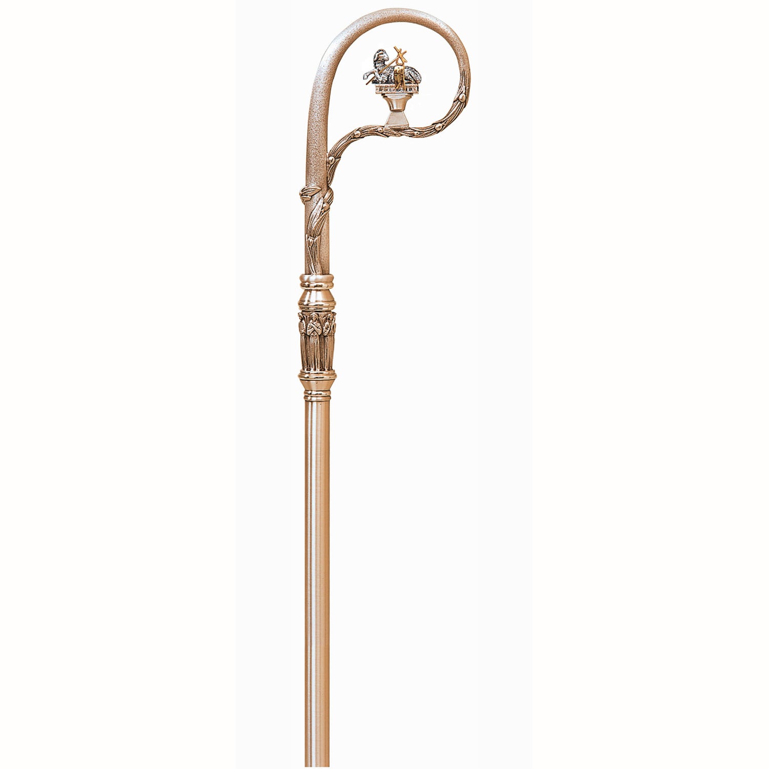 Crook section is richly textured metal with soft finish on 3-piece shaft and rubber tip on end. 71 inches high.