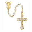 7mm white glass pearl beads and are combined with 24kt. gold plated rosary center and crucifix.