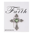 August birthstone cross lapel pin comes carded on a "Keep the Faith" card.