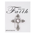 October birthstone cross lapel pin comes carded on a "Keep the Faith" card.