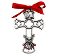 2-3/8 x 3-3/4 inch cross has Red Epoxy finish on the rays of a rising dove and red ribbon.