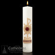 The Holy Trinity Christ Candle is a magnificent SCULPTWAX creation, hand decorated with raised relief wax appliques which combine classical and contemporary symbolism.
