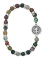 6MM INDIA AGATE BEADS AND ST. BENEDICT JUBILEE MEDAL STRETCH BRACELET.