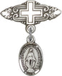 Sterling Silver Baby Badge with Miraculous Charm and Badge Pin with Cross.