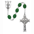 Glass oval beads each bear a small shamrock. The rosary features a sterling silver Marian center and Celtic crucifix .