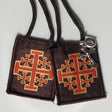 With brown Avatar wool backing this scapular carries embroidered red & gold Jerusalem crosses on a cotton and wool blend front.