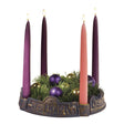 Advent wreath depicting the events of that first holy night is crafted in purple resin with a gold touch finish.