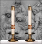 This set of 2 candles are decorated with high quality, rich gold and bronze sculpted wax reliefs with Chi Rho to match the Luke 24 eximious Paschal candle. These attractive altar candles enhance the presence of the Paschal candle or add to the beauty of your sanctuary for any liturgy.